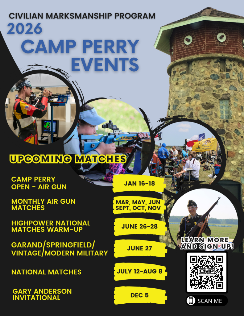 In addition to the Air Gun Events offered at the Gary Anderson CMP Competition Center, and Open Marksmanship Mondays held at Petrarca Range, the following matches are also held at Camp Perry.