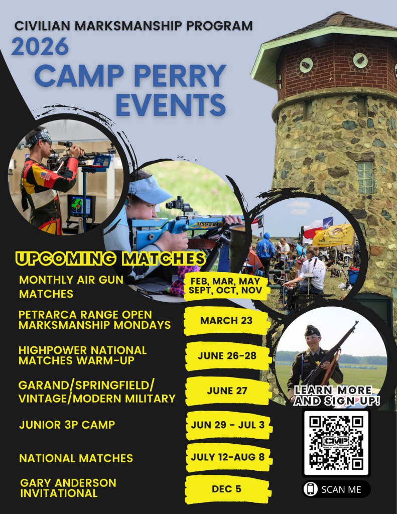 In addition to the Air Gun Events offered at the Gary Anderson CMP Competition Center, and Open Marksmanship Mondays held at Petrarca Range, the following matches are also held at Camp Perry.